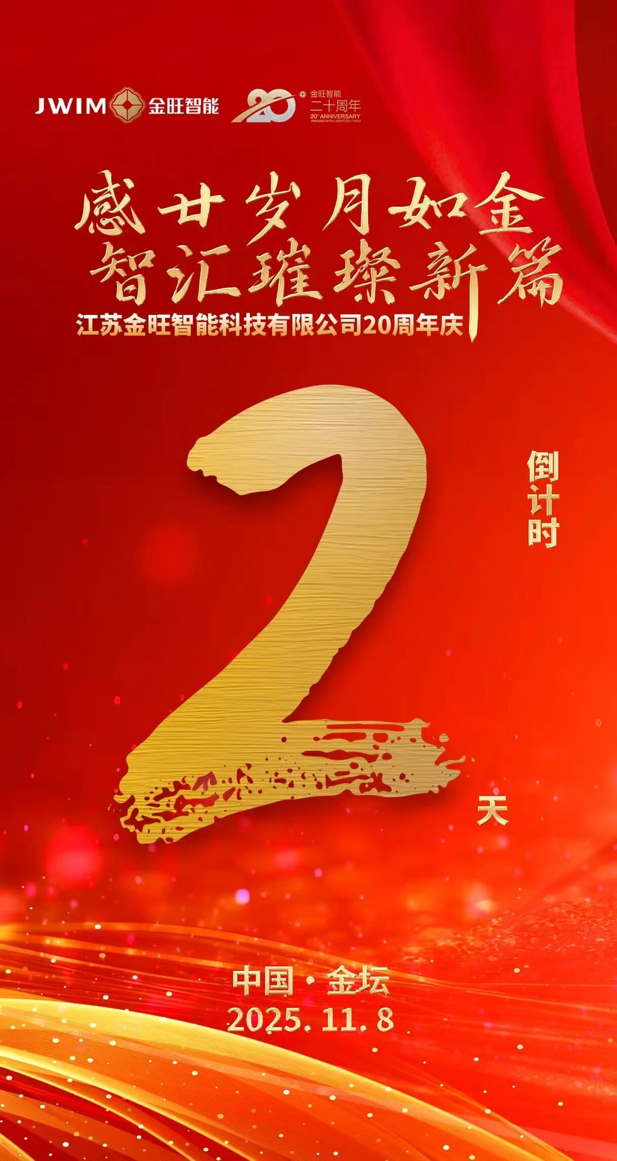 二十年磨一劍,整裝再出發。金旺智能誠邀各界合作伙伴與新老朋友共同關注11月8日的慶典活動,見證這家科技企業二十年來的成長與突破,攜手共創智能制造新未來。