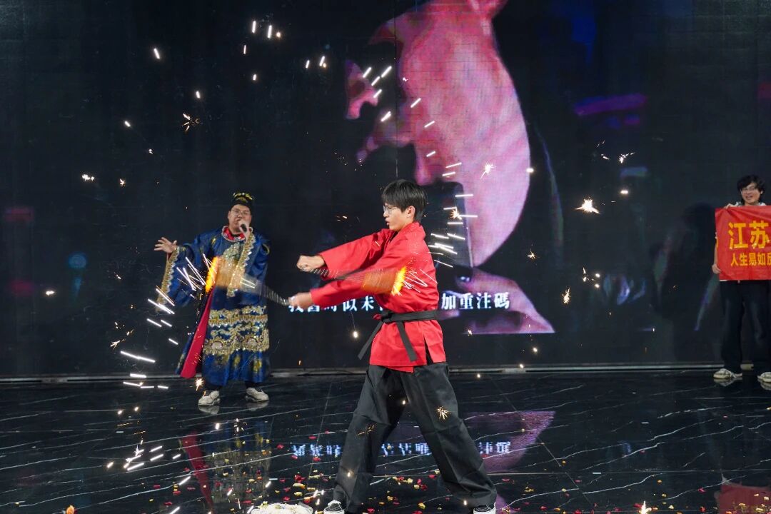 晚會設(shè)置三輪趣味游戲與馬年詩詞大賽。“蒙眼走繩”“策馬奔騰”“花襖穿衣挑戰(zhàn)賽”讓現(xiàn)場笑聲不斷;詩詞大賽上,選手們競相說出含“馬”字的成語與詩句,傳統(tǒng)文化與新春祥瑞交相輝映,獲勝者砸金蛋贏取好禮。