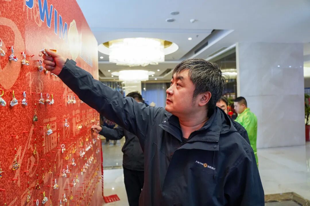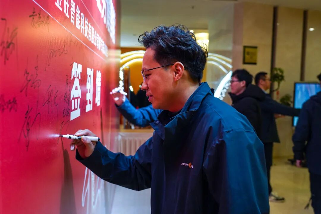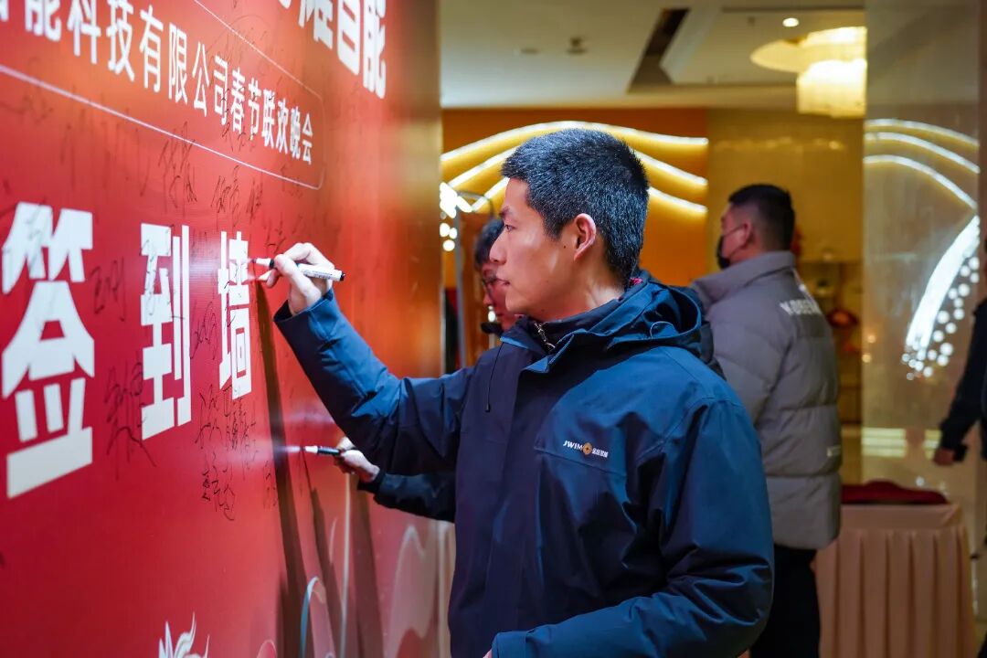董事長登臺揮毫,寫下“策馬揚鞭再出發(fā),智創(chuàng)未來續(xù)華章”的對聯(lián),寄托對金旺新一年的殷切期許。