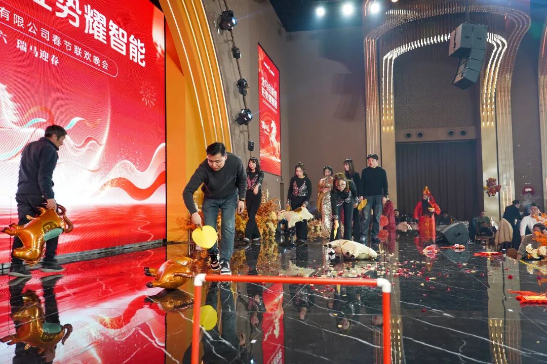各部門節(jié)目輪番上演,精彩紛呈。后臺支持中心與財務(wù)管理中心帶來開場舞《上春山》;智能服務(wù)中心合唱《恭喜發(fā)財》引爆氣氛;供應(yīng)鏈中心與品質(zhì)管理部的小品《顯擺大會》詼諧幽默;國際貿(mào)易部歌舞串燒《發(fā)財發(fā)福中國年》傳遞紅火年味;AI數(shù)智化中心創(chuàng)意舞蹈《消氣搖》詮釋快樂工作理念;袋裝事業(yè)部《搖擺兄弟》展現(xiàn)婉約與動感之美。