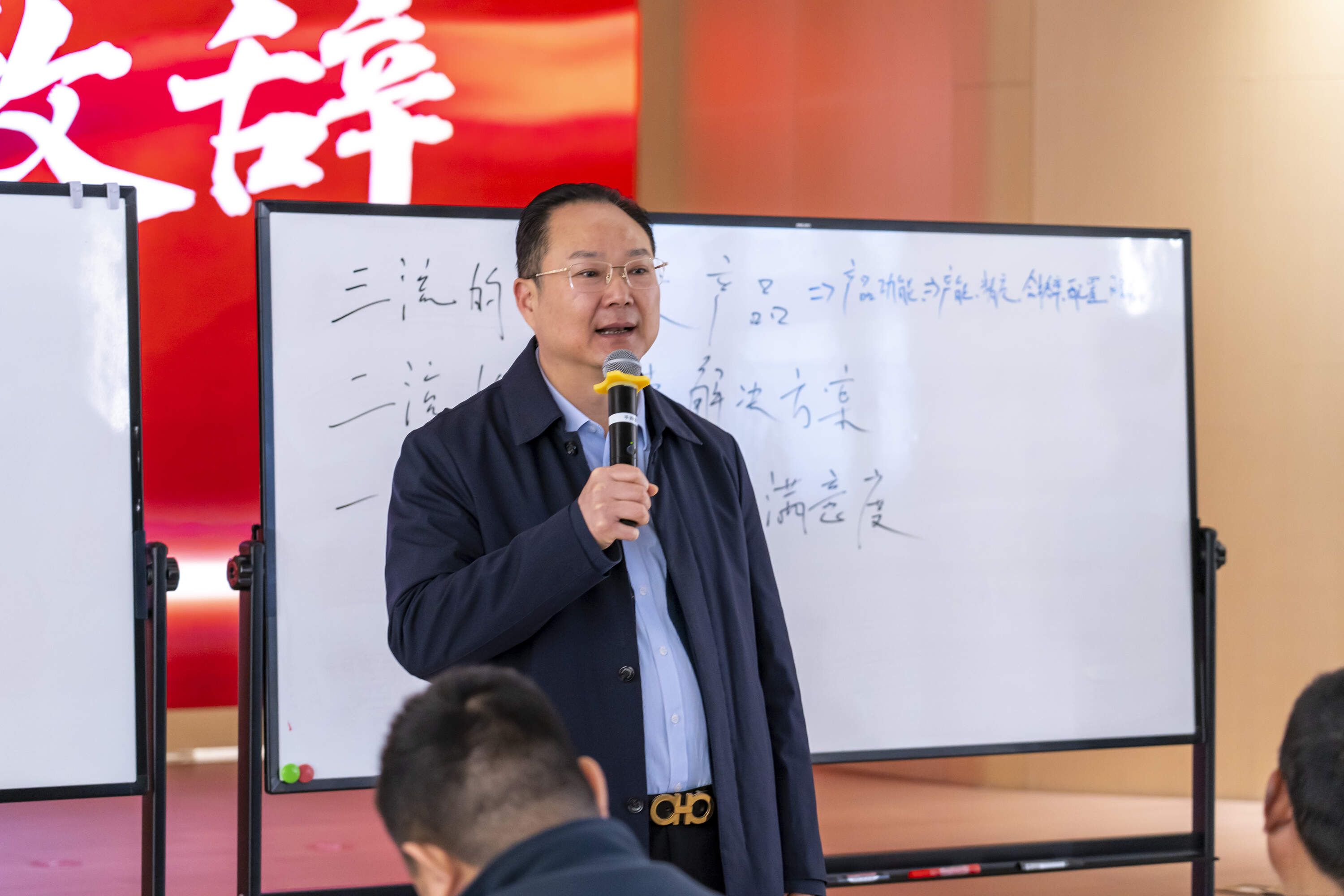 訓練營首日,董事長房國榮親臨現場作開班講話。他向全體銷售顧問提出三點希望: