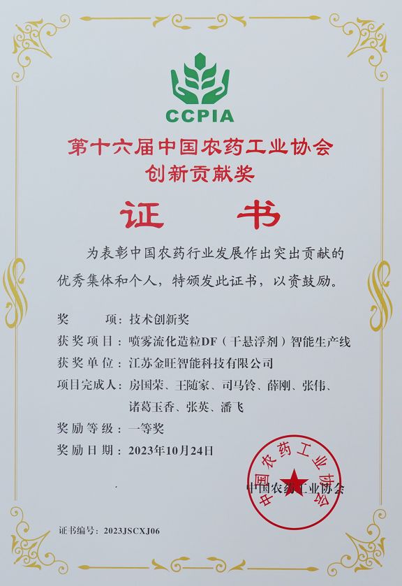 金旺智能被授予第十六屆中國(guó)農(nóng)藥工業(yè)協(xié)會(huì)