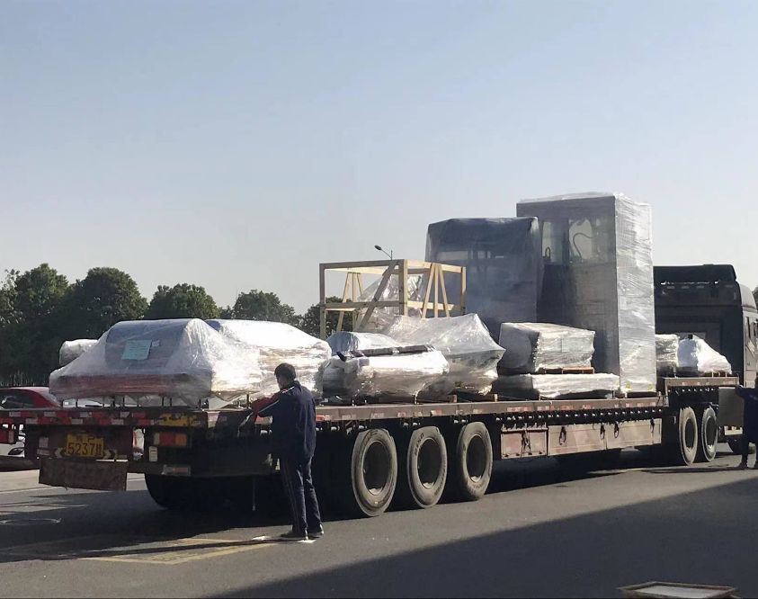 生產廠區內,發貨班組正緊張有序的操作著行車,將發往江西三條生產線設備進行裝車、固定。質檢人員對已裝車的各部件進行著出廠前的檢查和清點,以確保此次發貨能圓滿結束,并安全交付江西客戶現場。