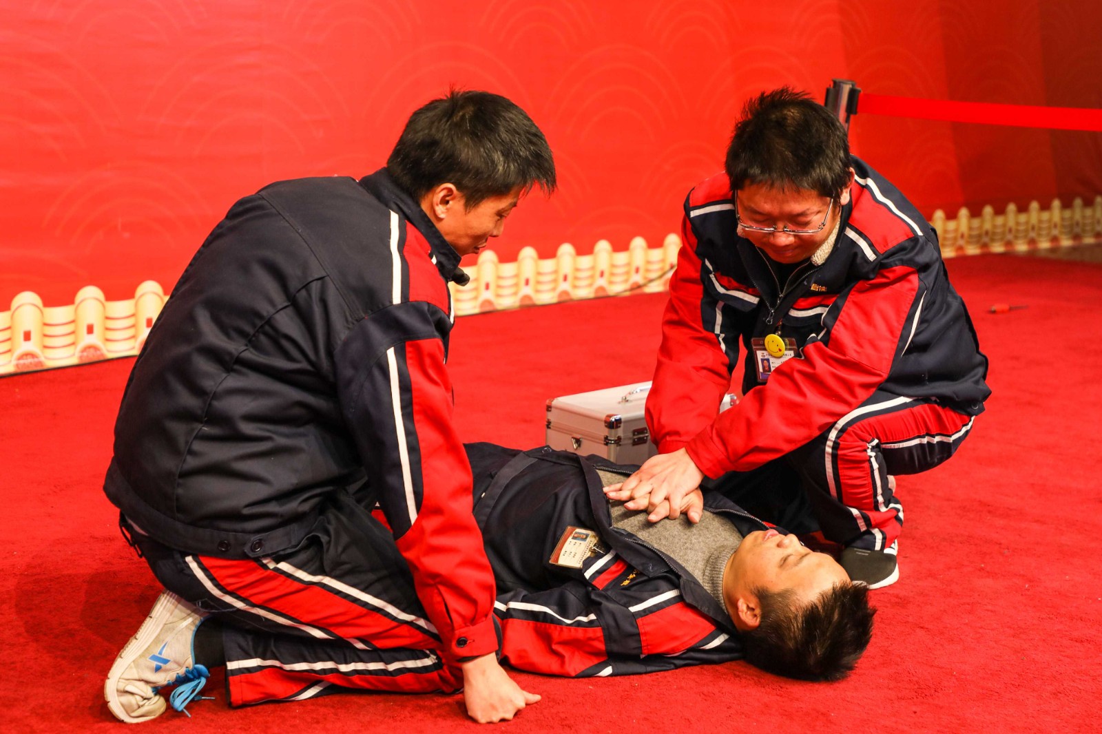 發現觸電人員時,應該及時有絕緣物體挑離電源,部分人員進行撥打救助電話,通知安全部門,第二步檢查觸電人員是否有心跳脈搏,如果沒有先檢查是否口中有異物,進行心肺復蘇及人工呼吸。