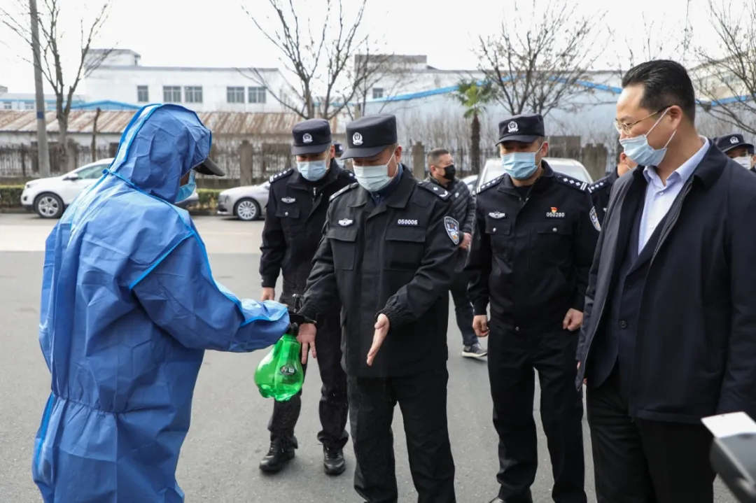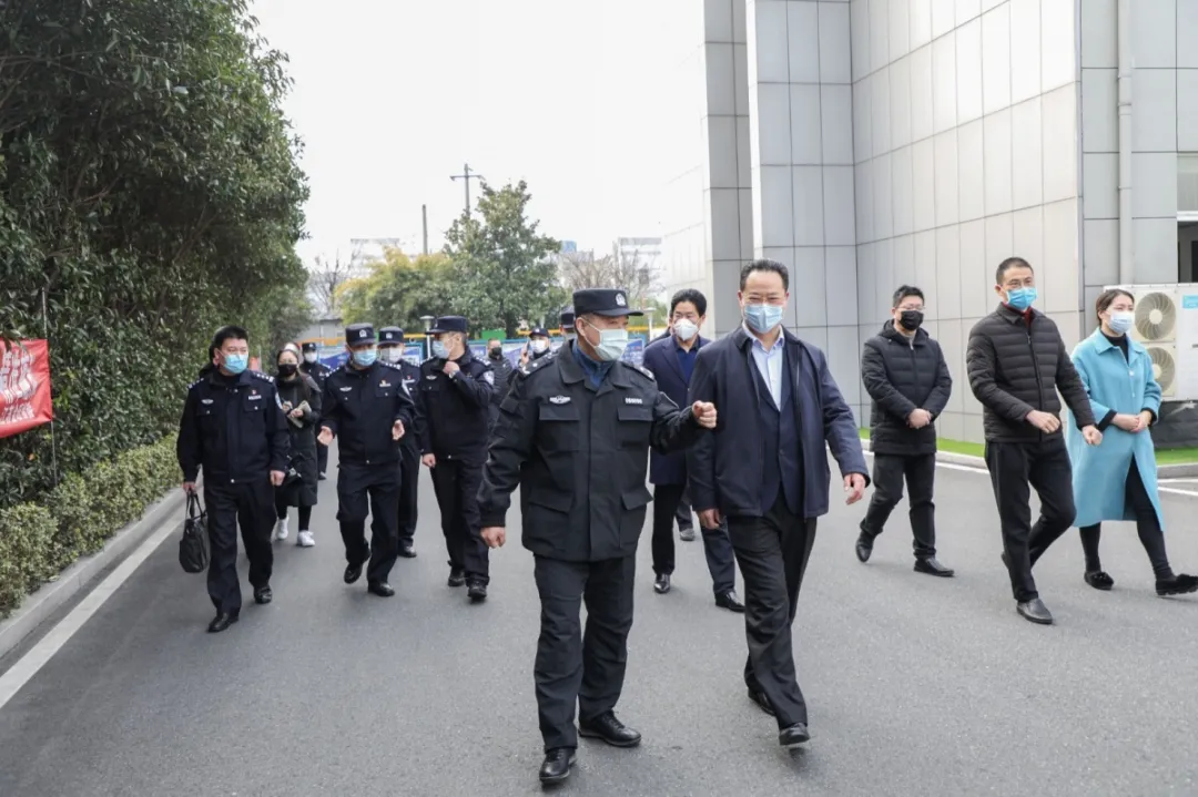 常州市公安局副局長徐衛東帶隊,金壇區人民政府副區長、常州市公安局金壇分局局長王曉航陪同,認真聽取江蘇金旺智能科技有限公司董事長房國榮針對企業疫情防控、技術研發、防疫物資供應等情況匯報,對企業細化疫情防控舉措、助力防疫物資供應予以肯定。