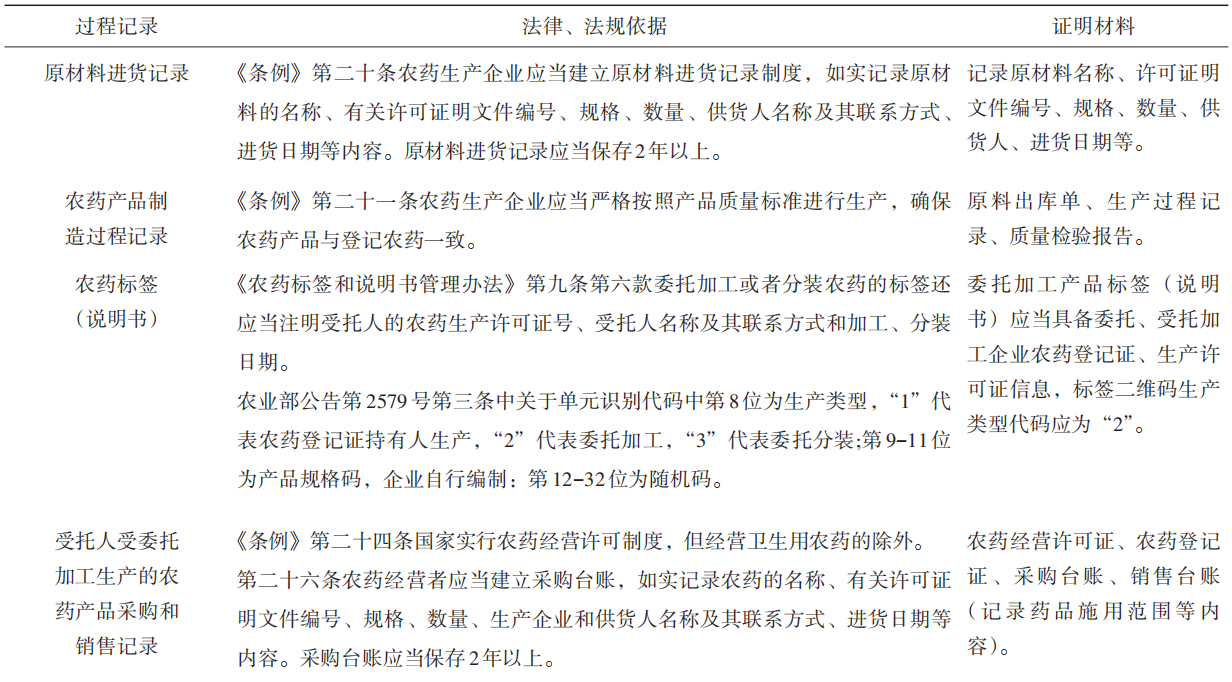 表1 農藥委托加工過程法定記錄