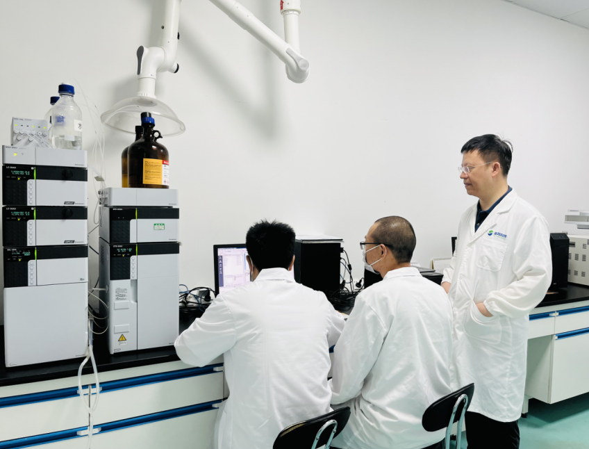 唐雪明(右一)和他的團隊成員在實驗室做RNA生物農藥的檢測分析