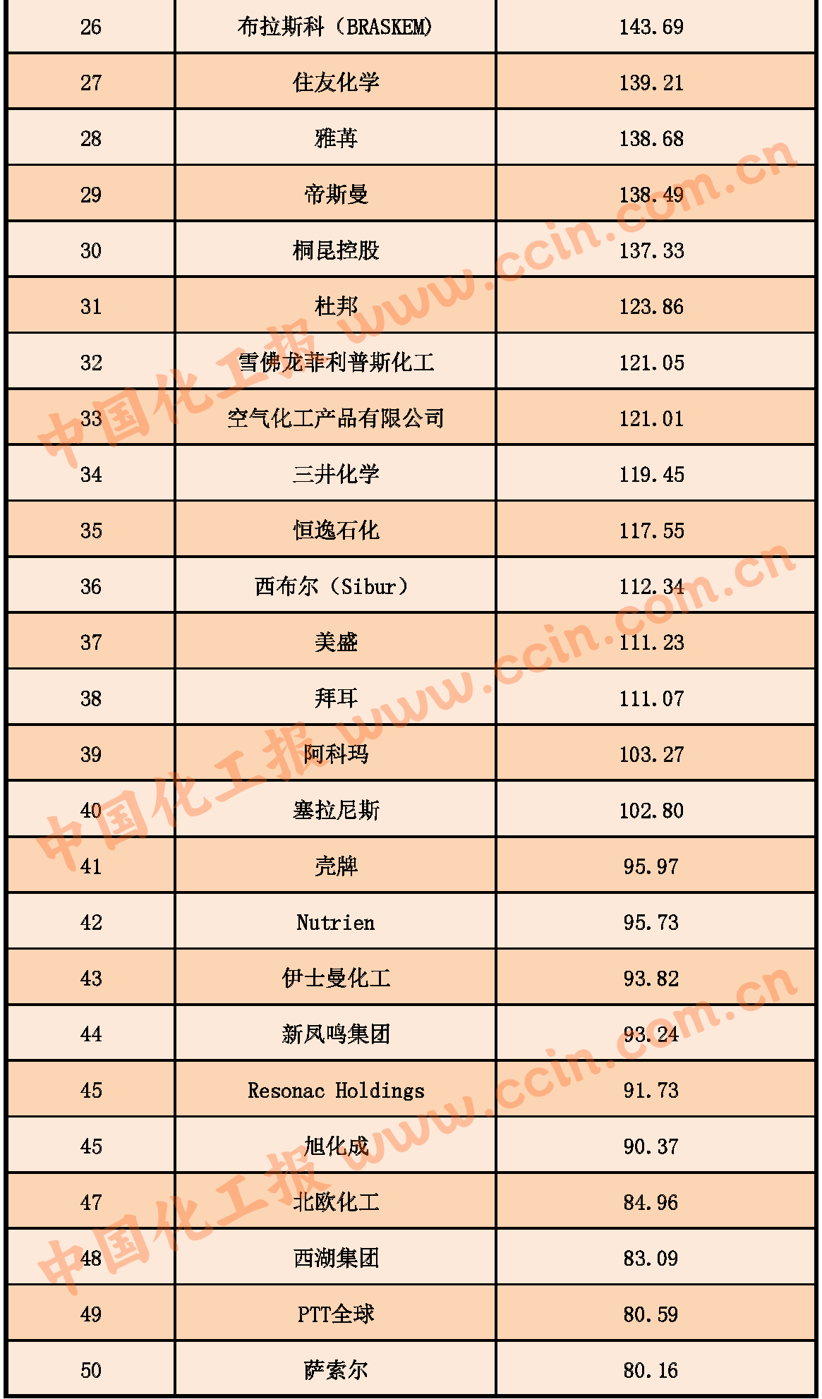 全球化工企業(yè)50強公布,巴斯夫位居榜首