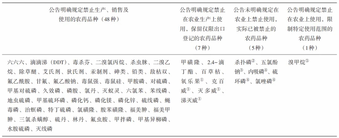 表1 我國禁止使用農藥分類及清單