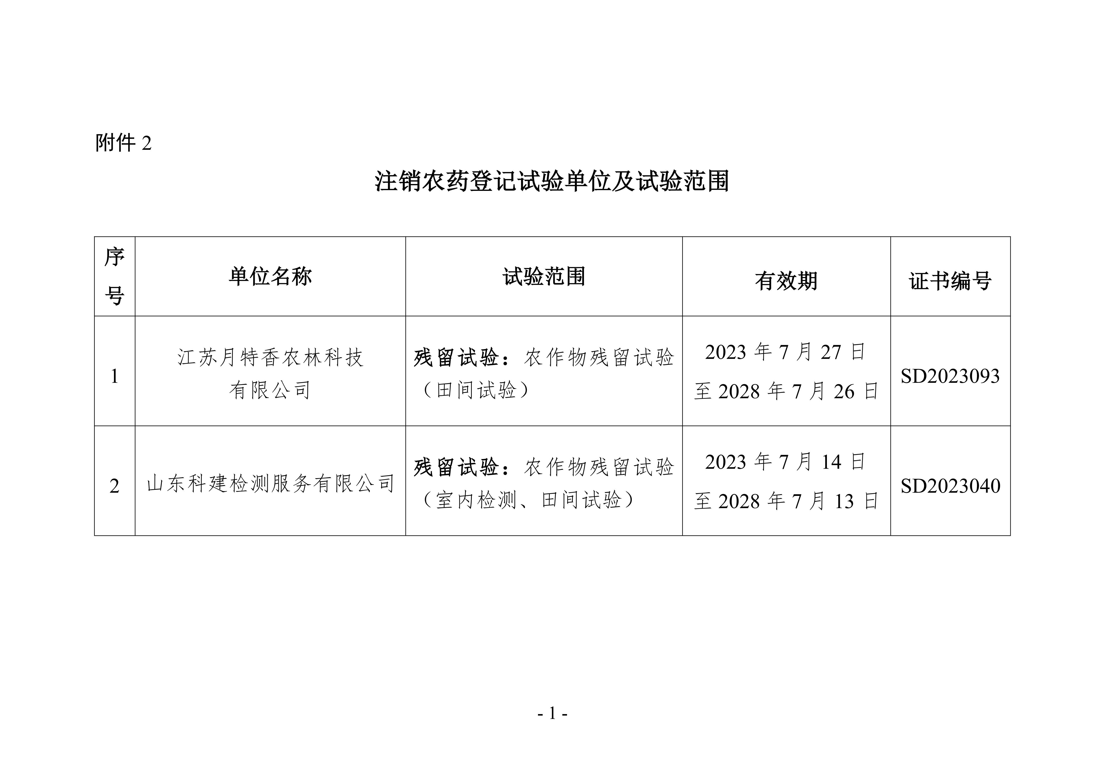 2.注銷農(nóng)藥登記試驗單位及試驗范圍