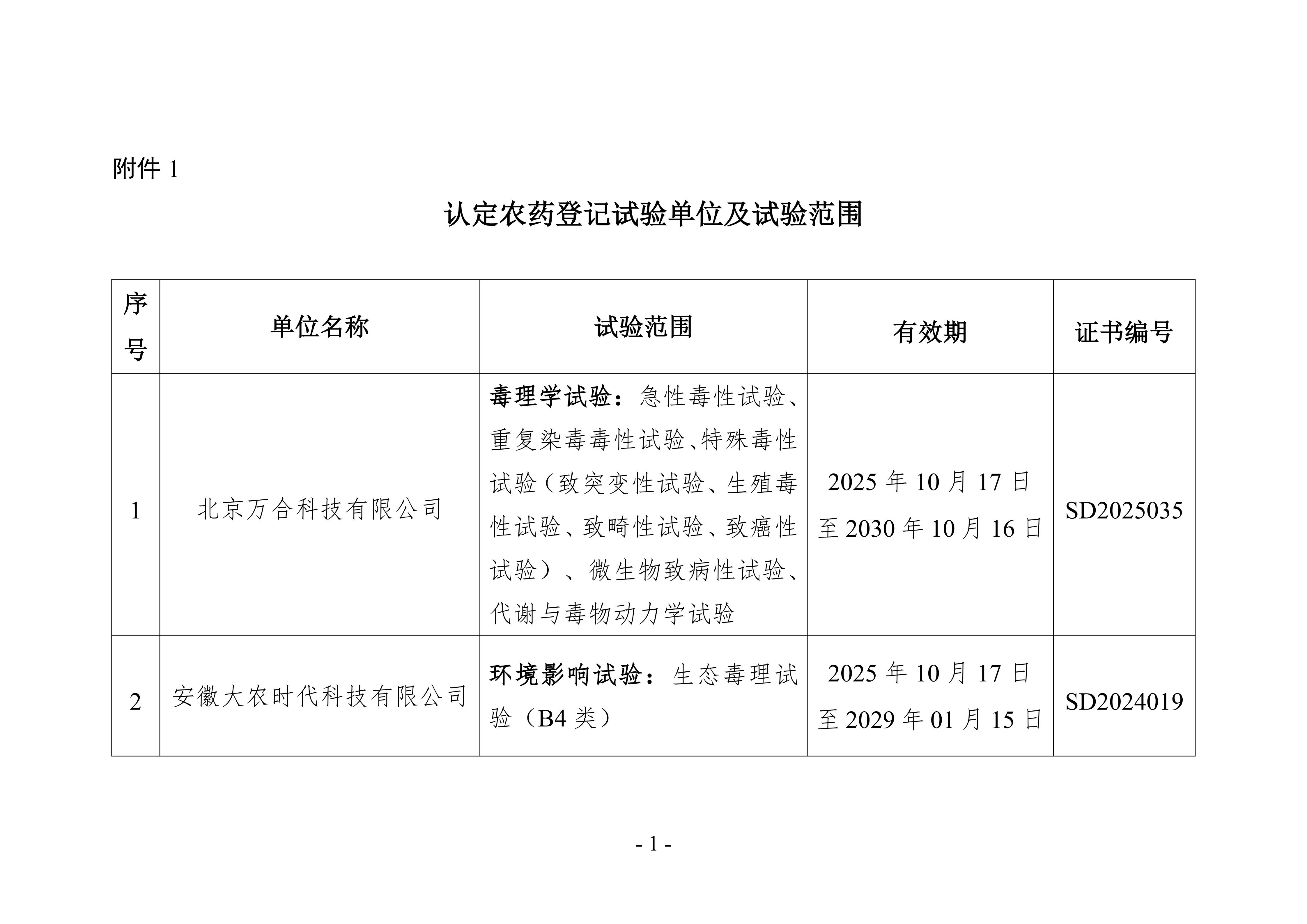 1.認定農(nóng)藥登記試驗單位及試驗范圍