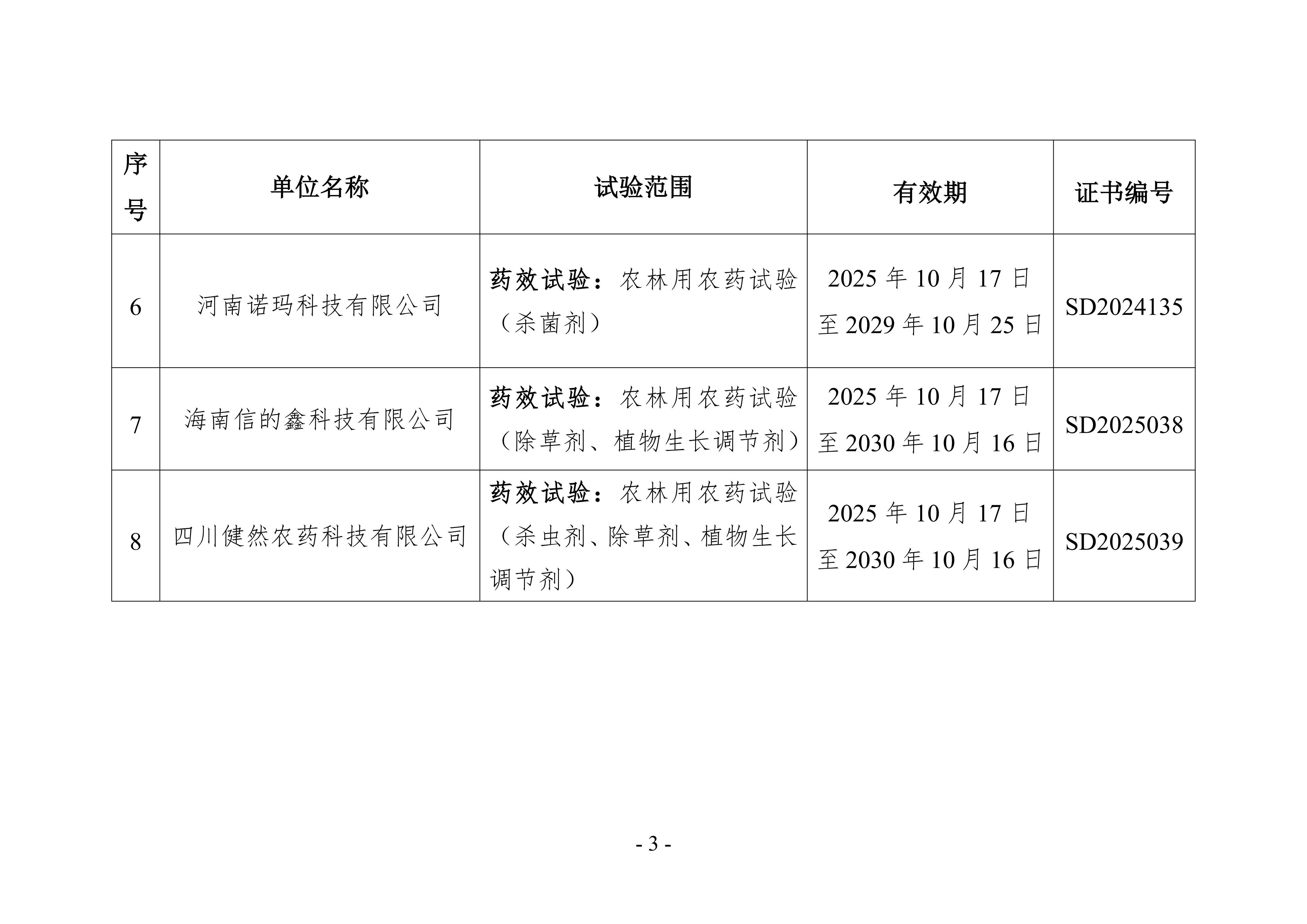 根據(jù)《農(nóng)藥管理條例》《農(nóng)藥登記試驗管理辦法》《農(nóng)藥登記試驗單位評審規(guī)則》等有關規(guī)定,認定北京萬合科技有限公司等8家單位為農(nóng)藥登記試驗單位(詳見附件1)。注銷江蘇月特香農(nóng)林科技有限公司、山東科建檢測服務有限公司農(nóng)藥登記試驗單位資質(zhì)(詳見附件2)。