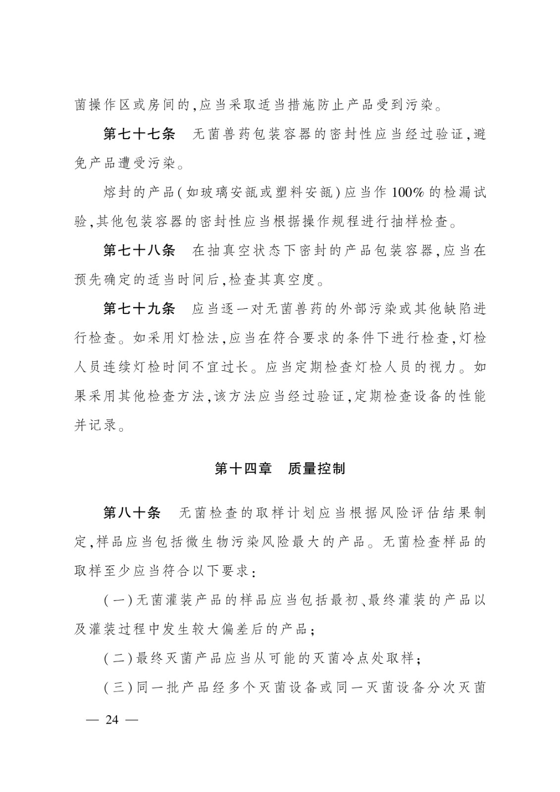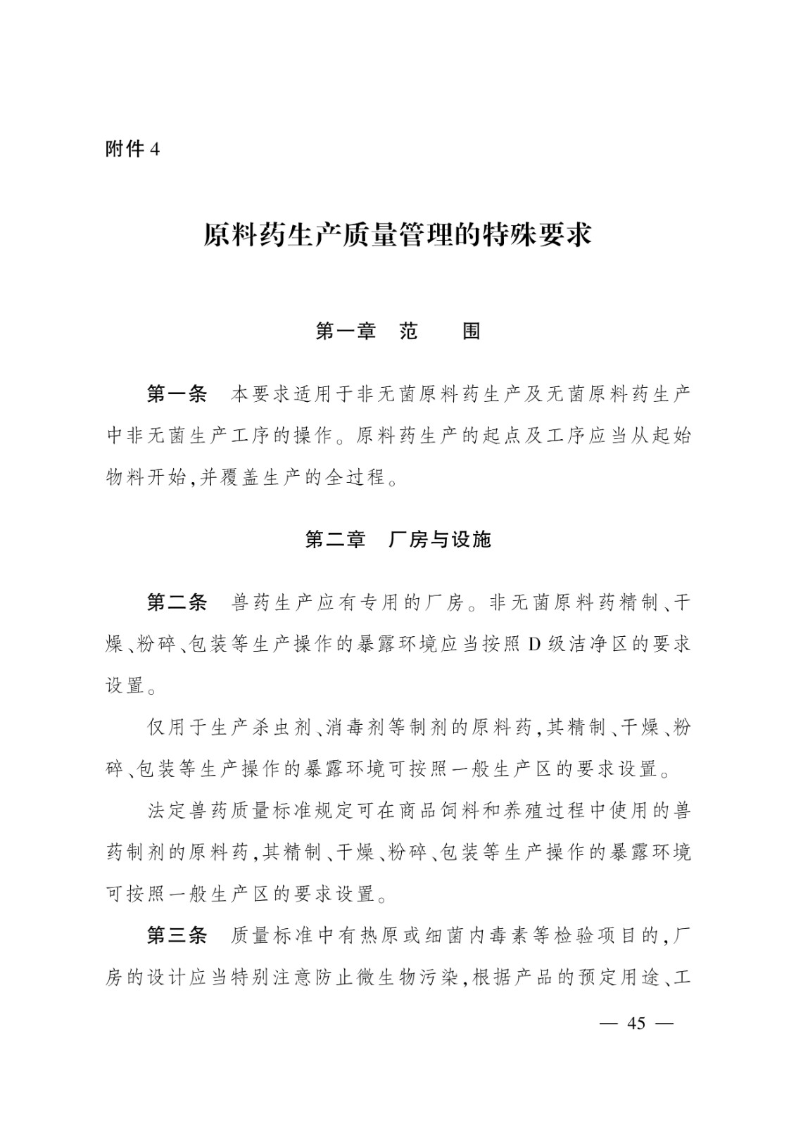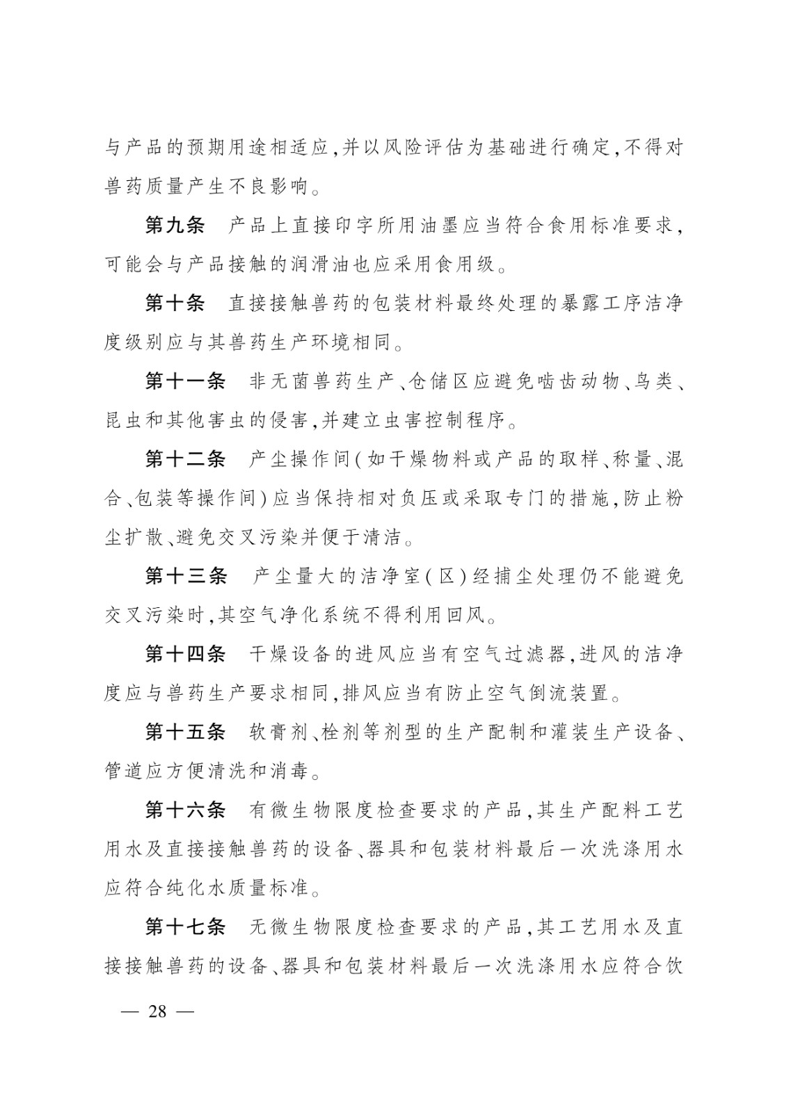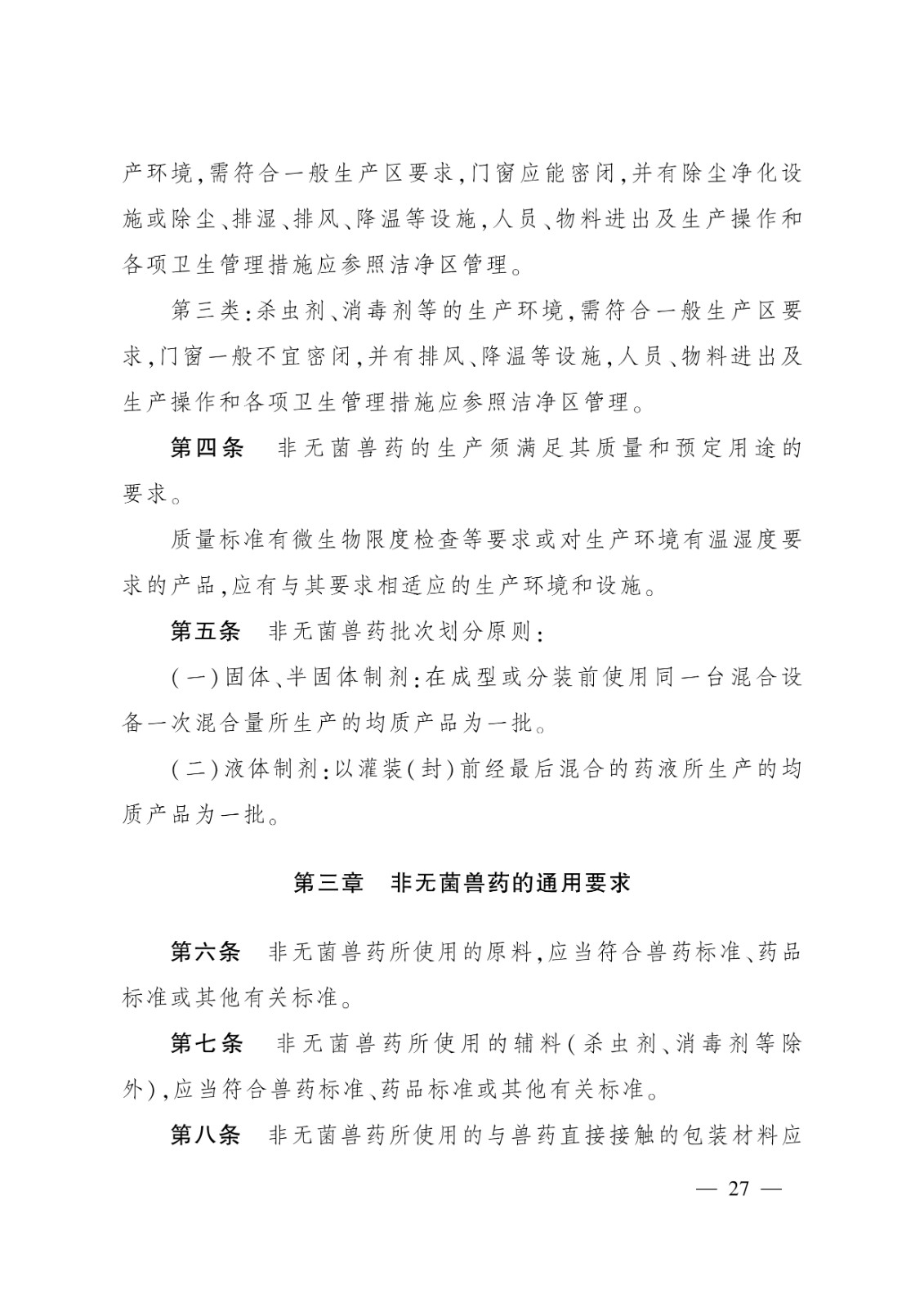 無菌獸藥生產質量管理的特殊要求;2.非無菌獸藥生產質量管理的特殊要求;3.獸用生物制品生產質量管理的特殊要求;4.原料藥生產質量管理的特殊要求;5.中藥制劑生產質量管理的特殊要求