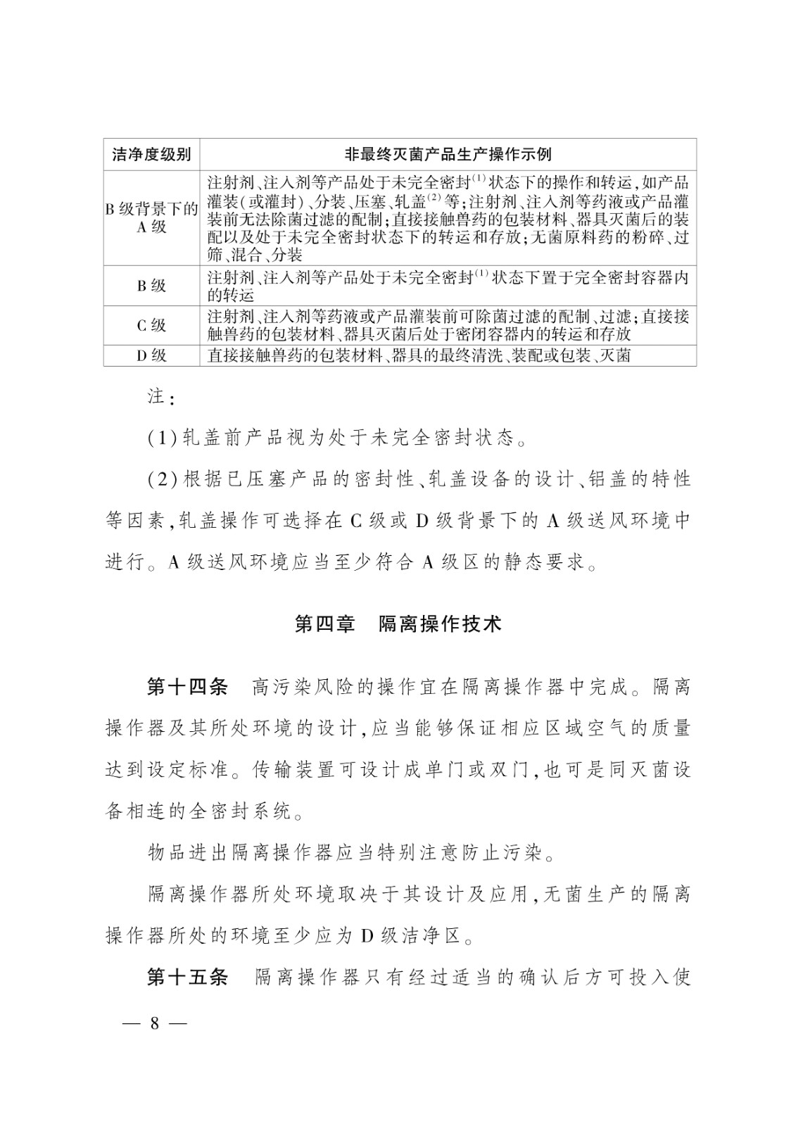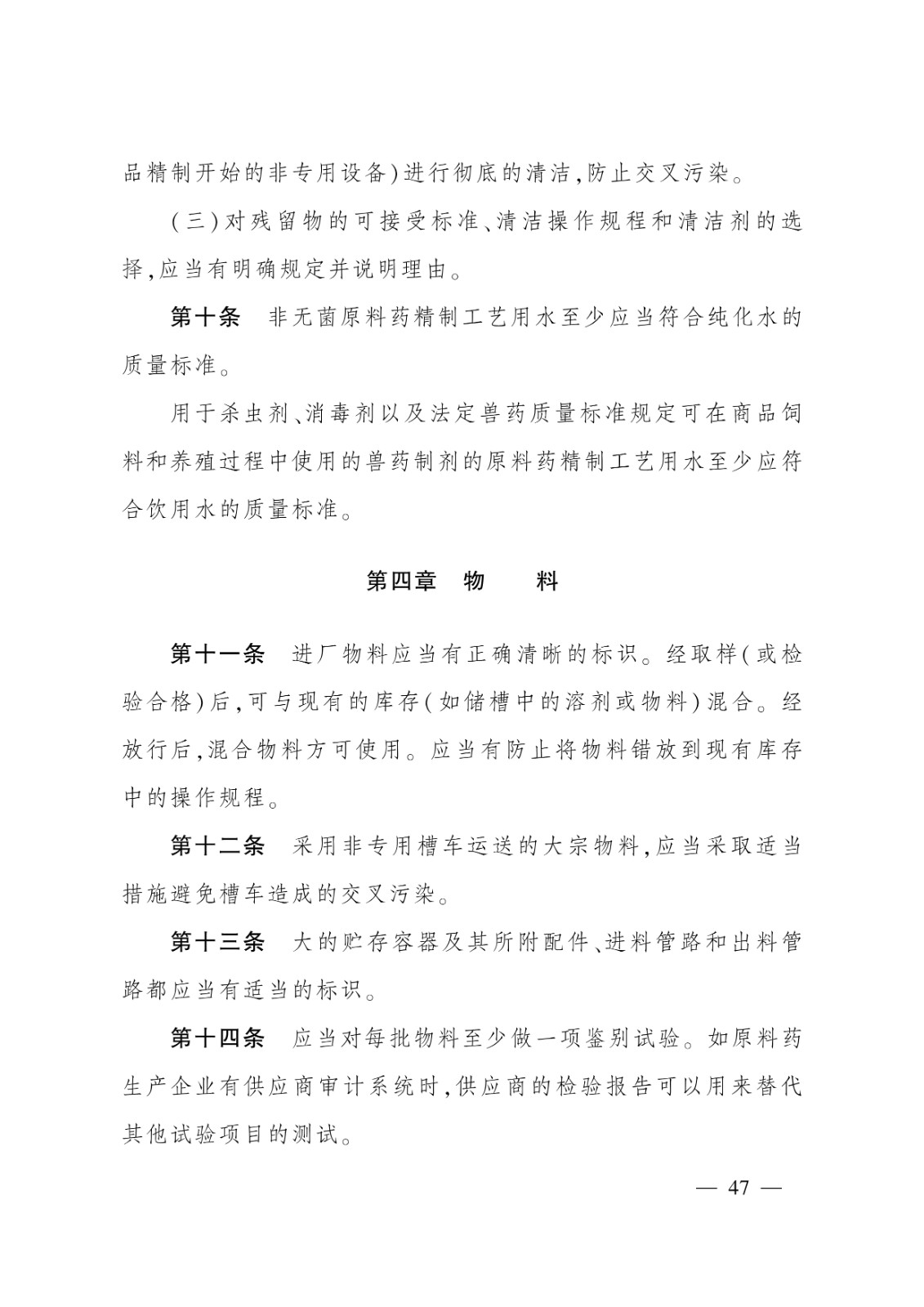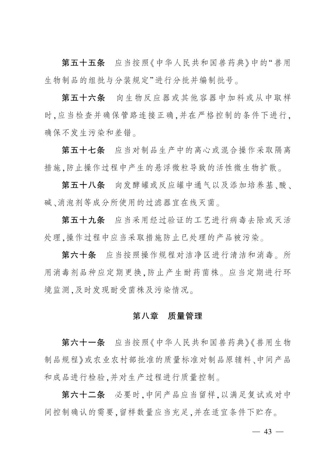 無菌獸藥生產質量管理的特殊要求;2.非無菌獸藥生產質量管理的特殊要求;3.獸用生物制品生產質量管理的特殊要求;4.原料藥生產質量管理的特殊要求;5.中藥制劑生產質量管理的特殊要求
