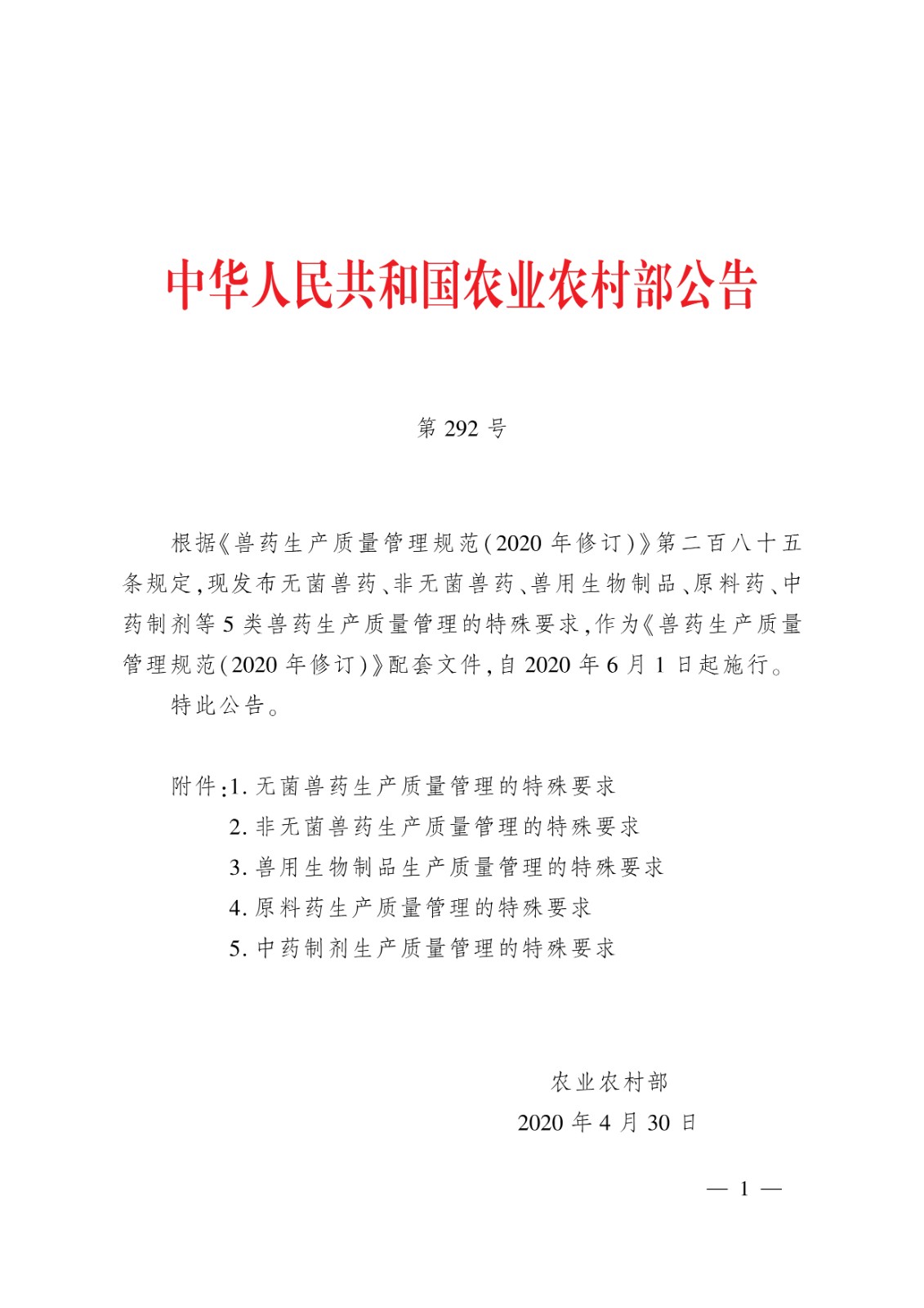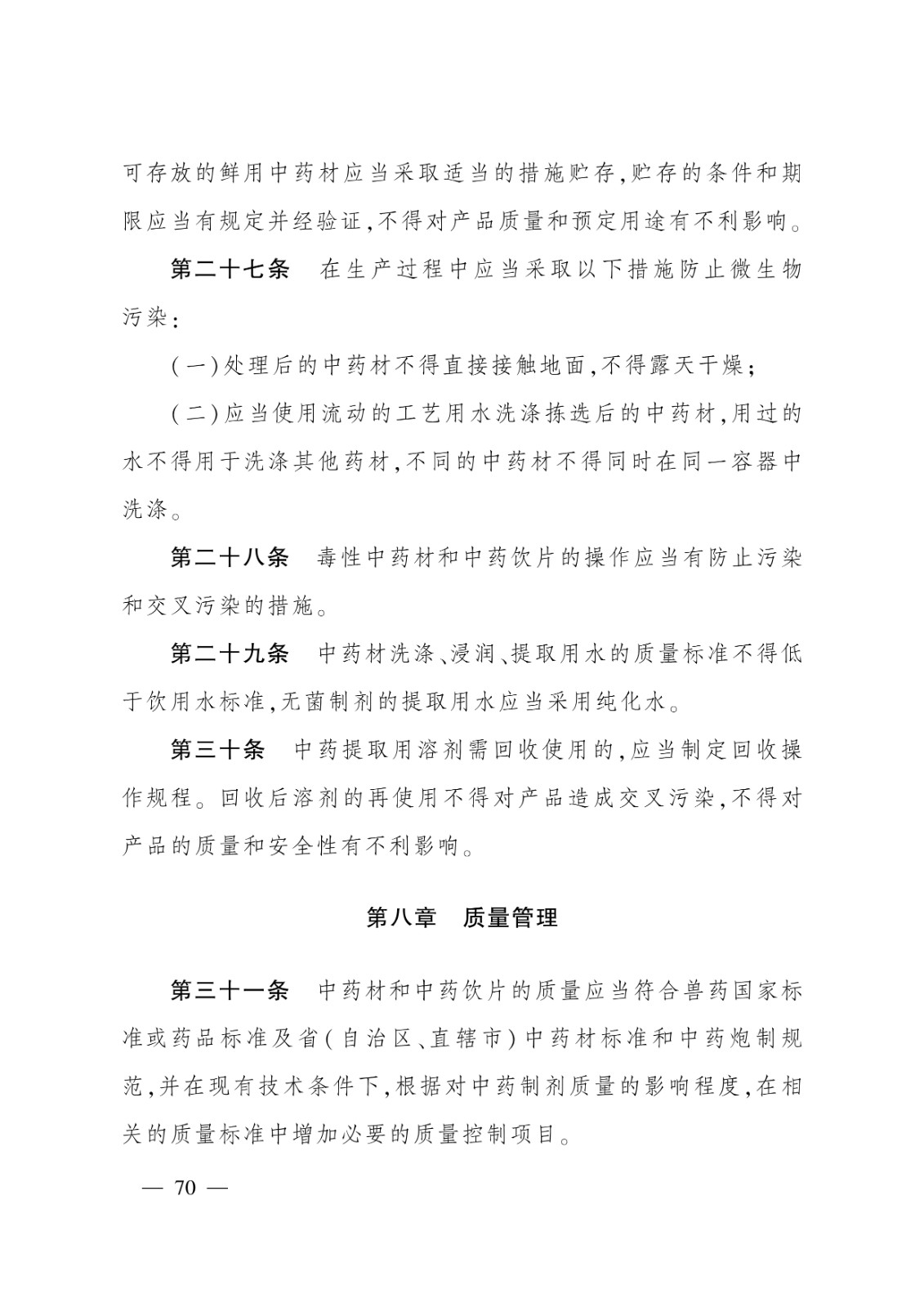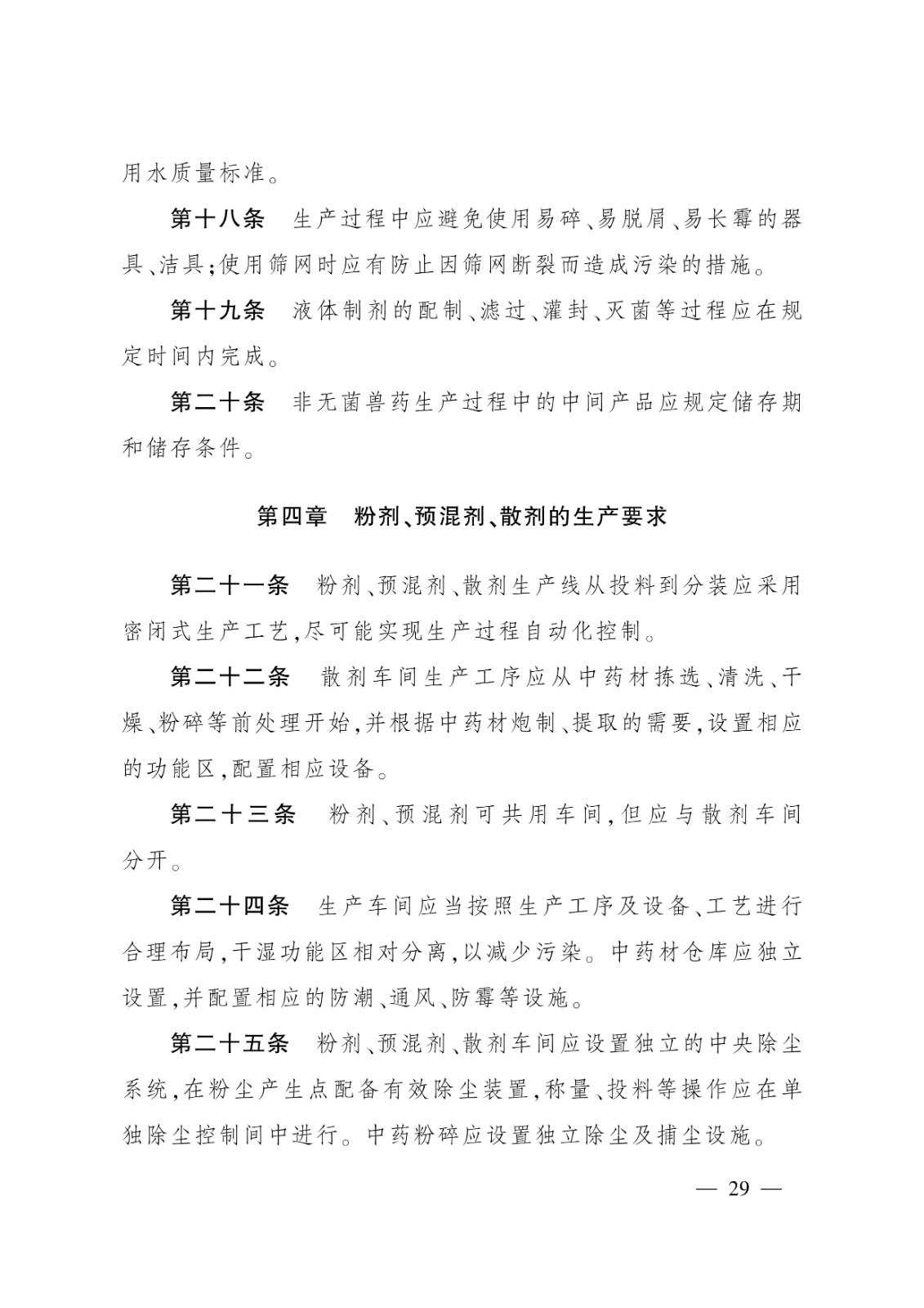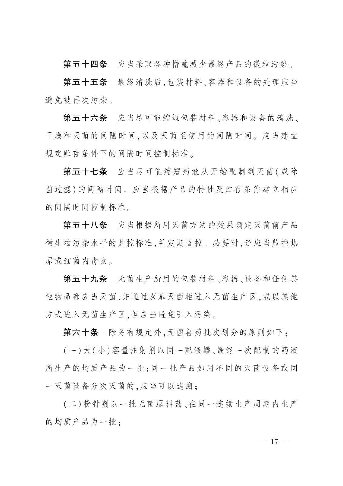 無菌獸藥生產質量管理的特殊要求;2.非無菌獸藥生產質量管理的特殊要求;3.獸用生物制品生產質量管理的特殊要求;4.原料藥生產質量管理的特殊要求;5.中藥制劑生產質量管理的特殊要求
