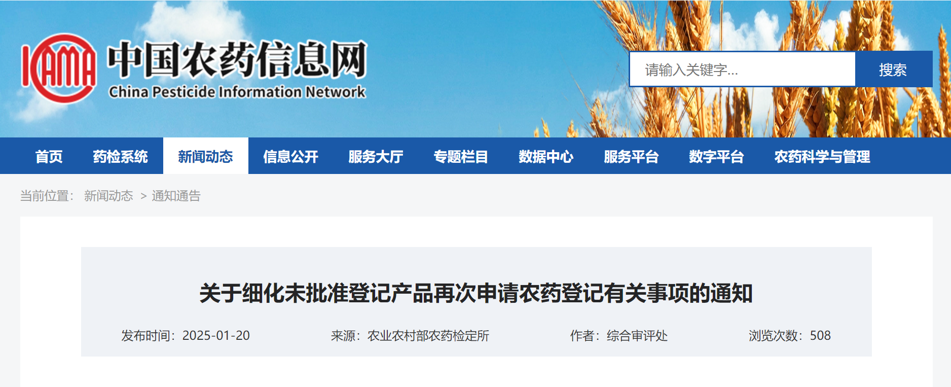 關(guān)于細(xì)化未批準(zhǔn)登記產(chǎn)品再次申請農(nóng)藥登記有關(guān)事項(xiàng)的通知