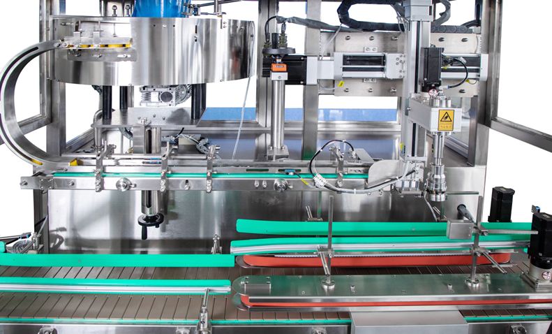 區別于常規旋蓋機,在旋蓋時需要停頓,會使物料晃出桶口,污染桶身。該設備旋蓋不停頓,有效的避免了旋蓋停頓晃液,保持桶身清潔。