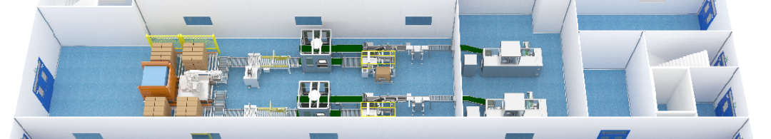整個設計充分利用空間優勢,提升了自動化程度,成品物料對接包裝設備更加方便快捷,同時釋放了一層包裝空間,實現多線同時生產,減員增效!